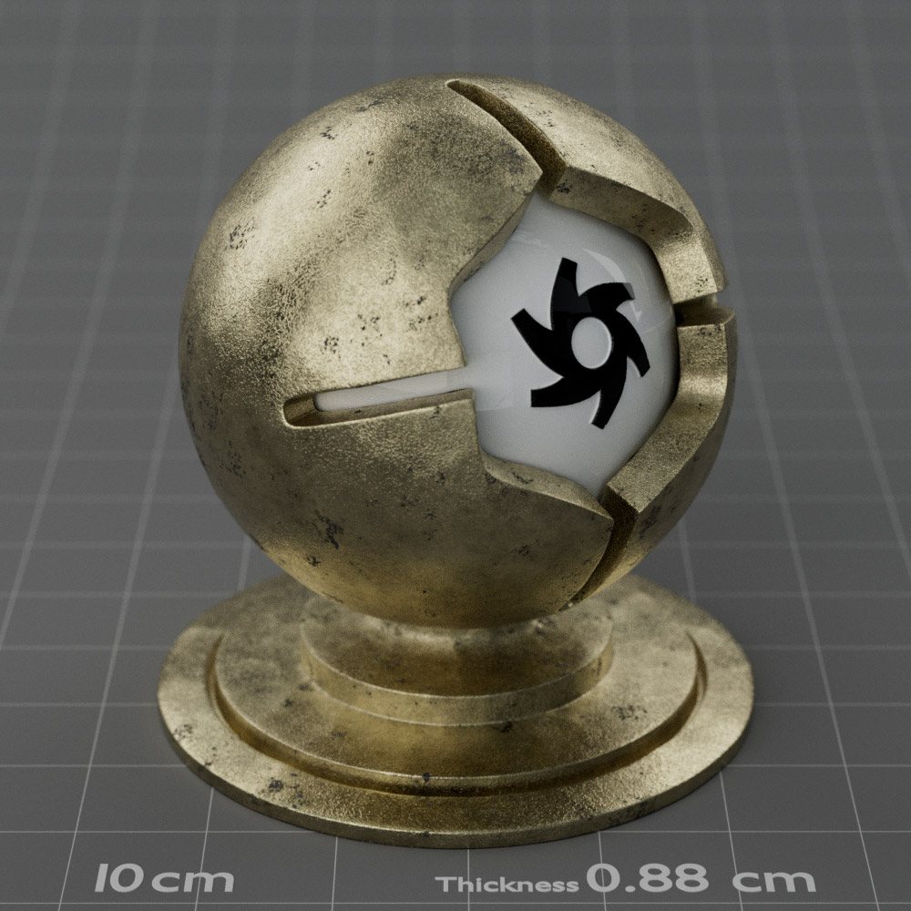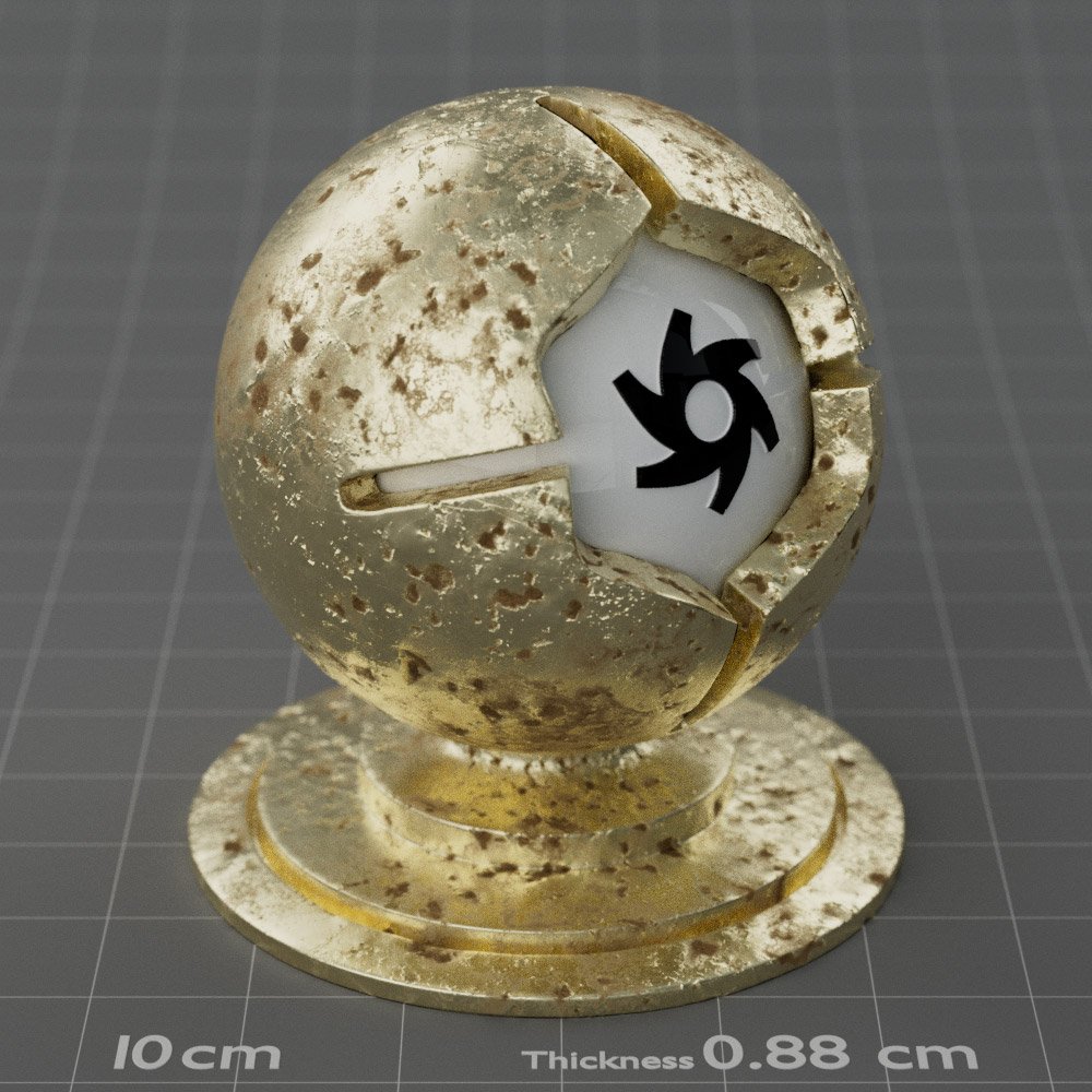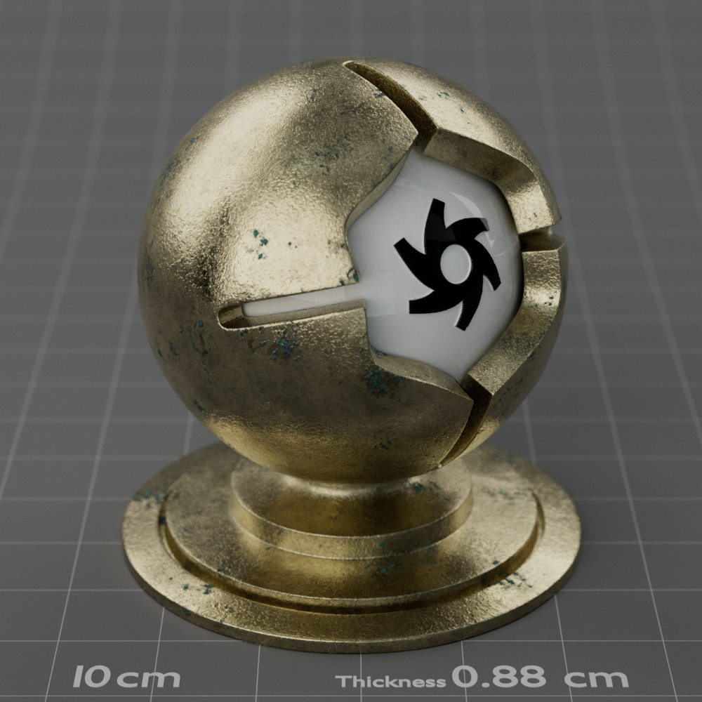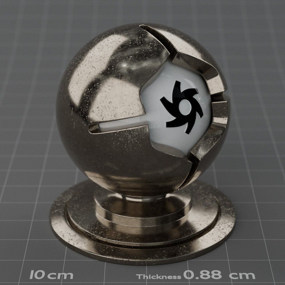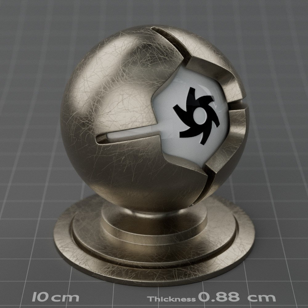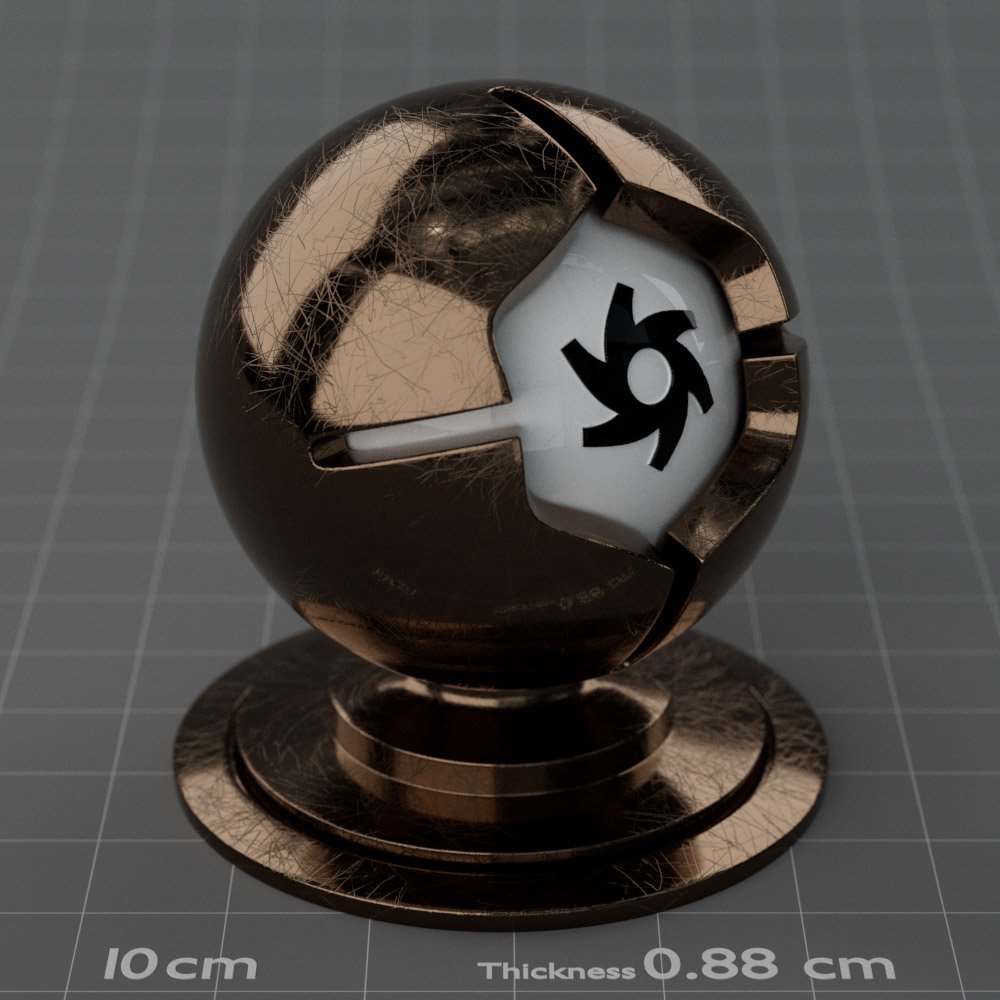 Included are 10 base metals: Aluminum, Brass, Bronze, Chrome, Copper, Gold, Iron, Platinum, Silver, and Steel. Every one has dozens of mutations like Polished, Smudged, Sandblasted, Cast, Grinded, Raw, Brushed, Powder Coated, Galvanized, Hammered, Wrought, Forged, Corroded/Rusted, Painted, Scratched, Pitted, Dented, and Damaged. This pack will help you iterate and find the perfect metal quickly, without having to dive into the node tree.