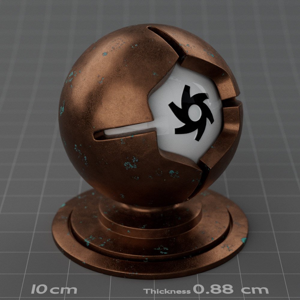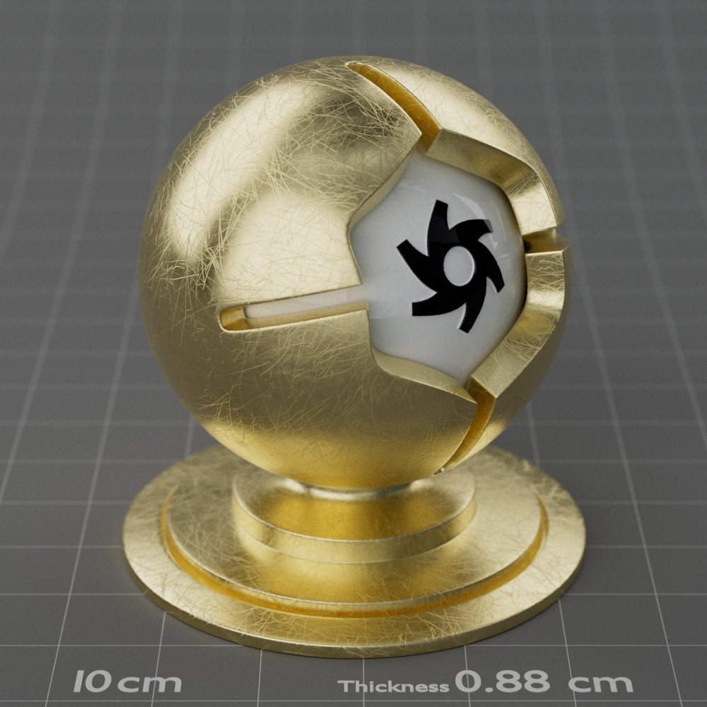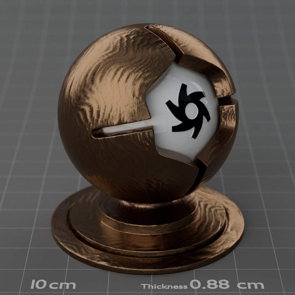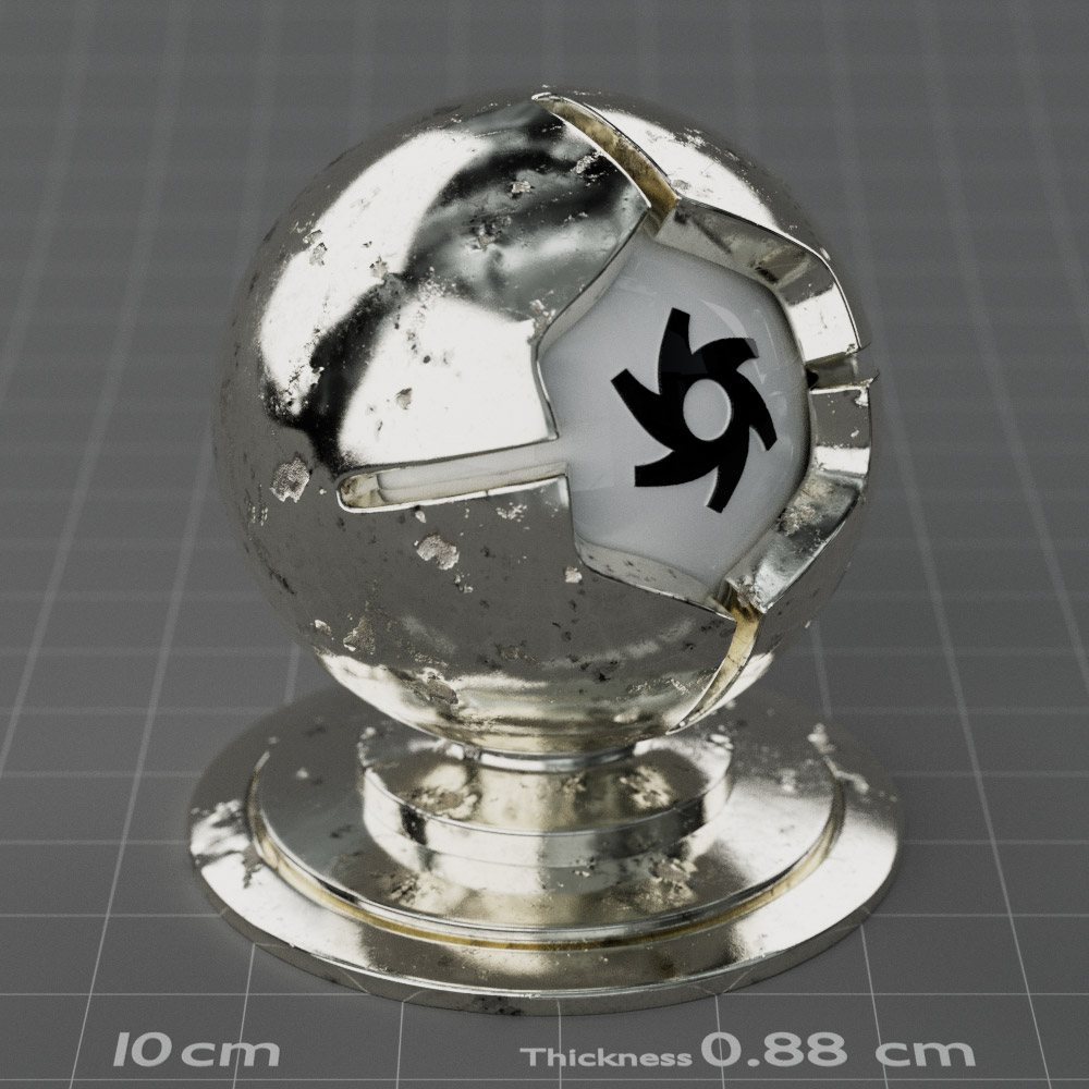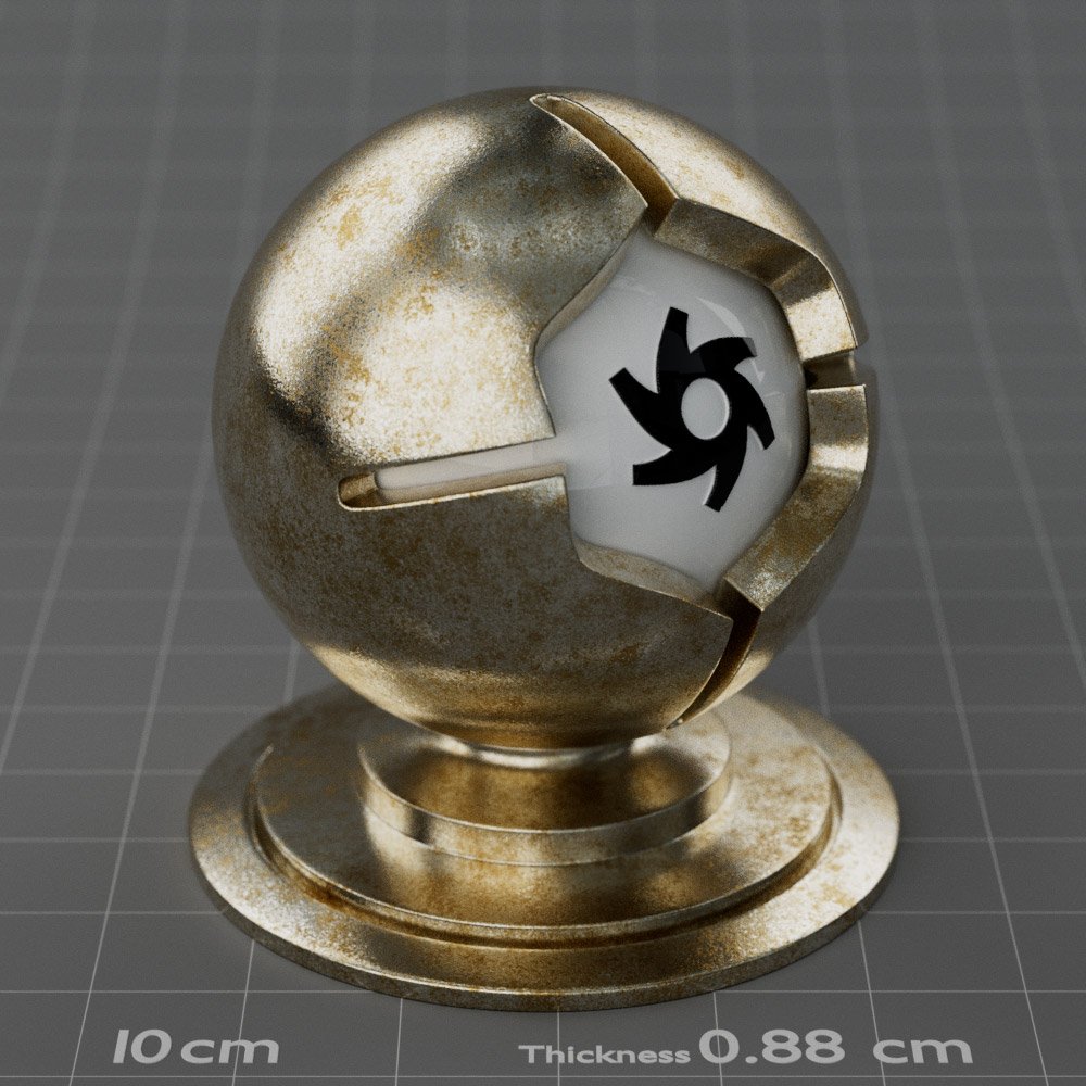 Included are 10 base metals: Aluminum, Brass, Bronze, Chrome, Copper, Gold, Iron, Platinum, Silver, and Steel. Every one has dozens of mutations like Polished, Smudged, Sandblasted, Cast, Grinded, Raw, Brushed, Powder Coated, Galvanized, Hammered, Wrought, Forged, Corroded/Rusted, Painted, Scratched, Pitted, Dented, and Damaged. This pack will help you iterate and find the perfect metal quickly, without having to dive into the node tree.