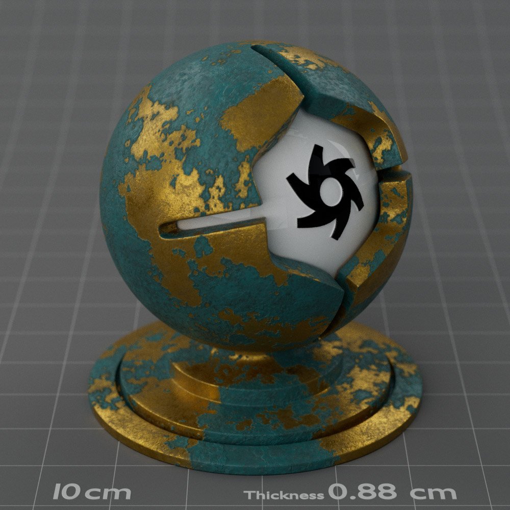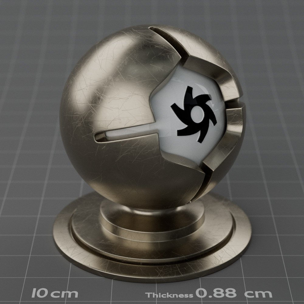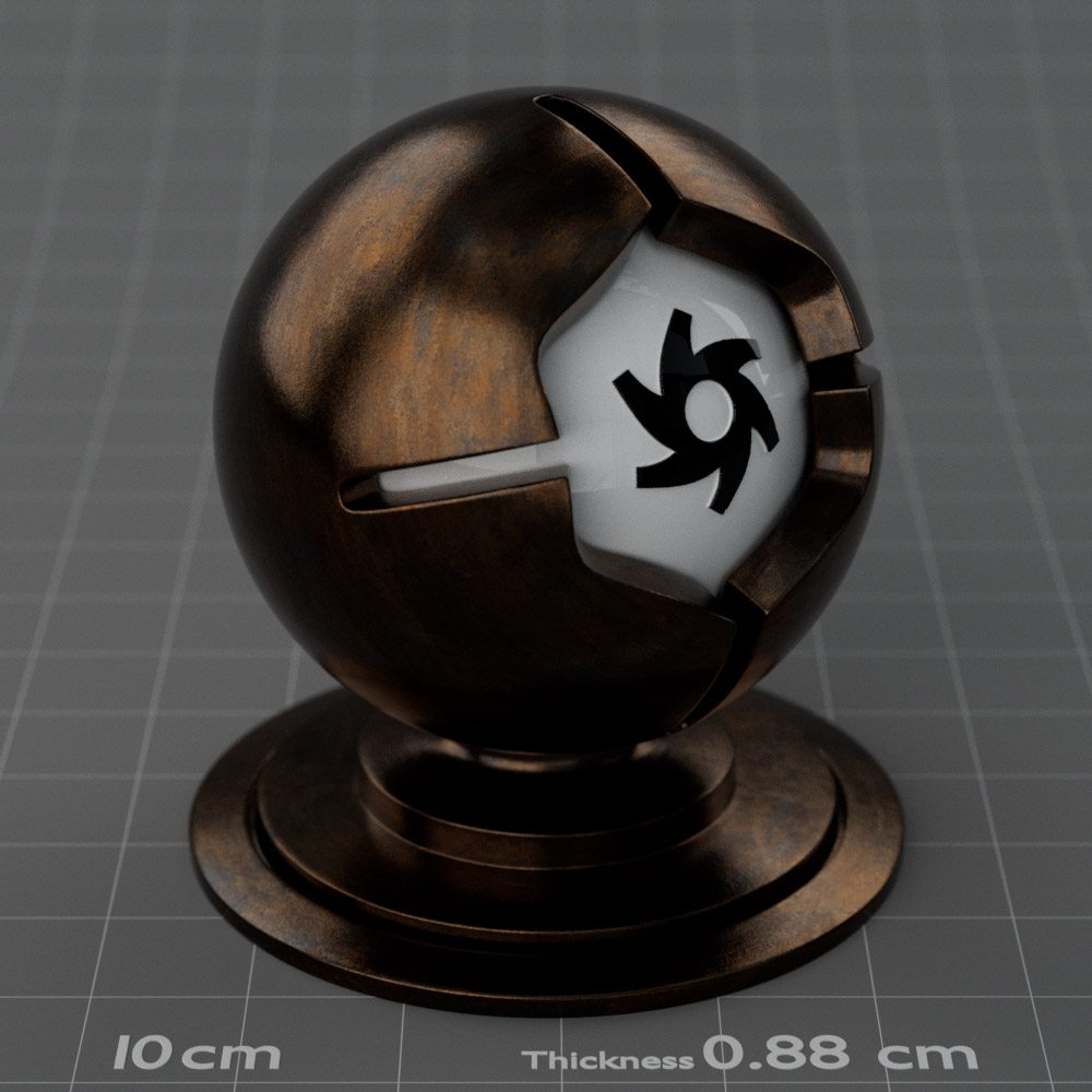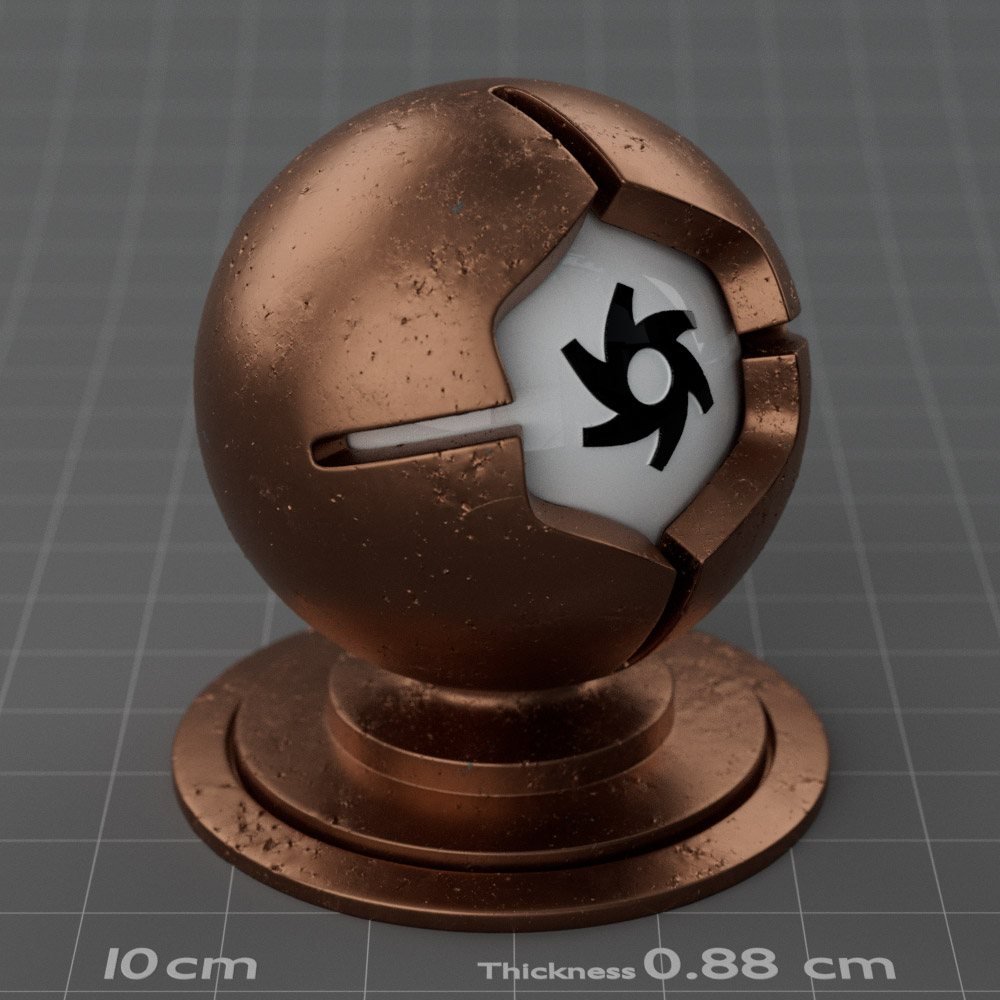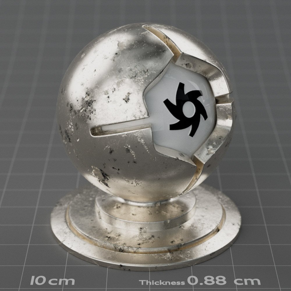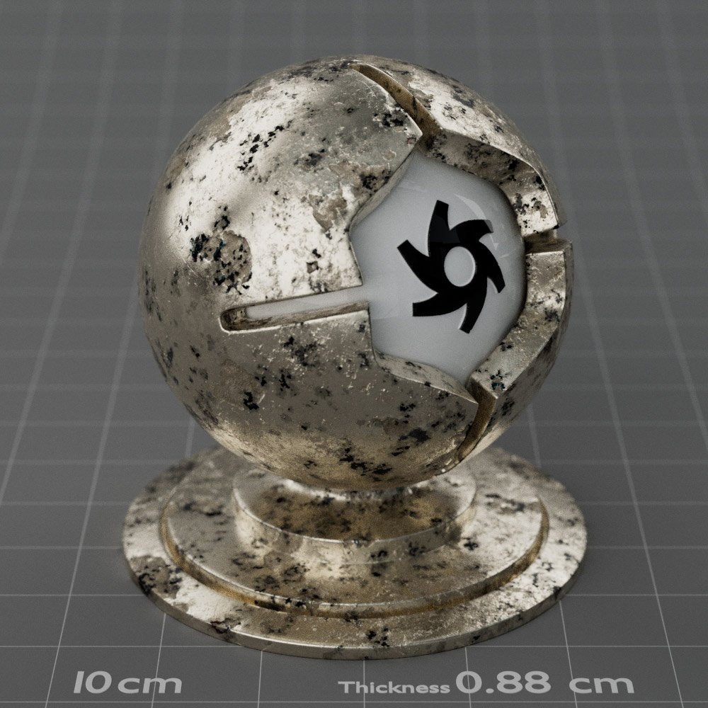 Included are 10 base metals: Aluminum, Brass, Bronze, Chrome, Copper, Gold, Iron, Platinum, Silver, and Steel. Every one has dozens of mutations like Polished, Smudged, Sandblasted, Cast, Grinded, Raw, Brushed, Powder Coated, Galvanized, Hammered, Wrought, Forged, Corroded/Rusted, Painted, Scratched, Pitted, Dented, and Damaged. This pack will help you iterate and find the perfect metal quickly, without having to dive into the node tree.
