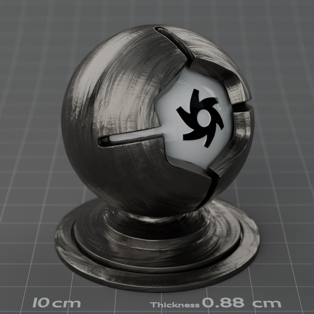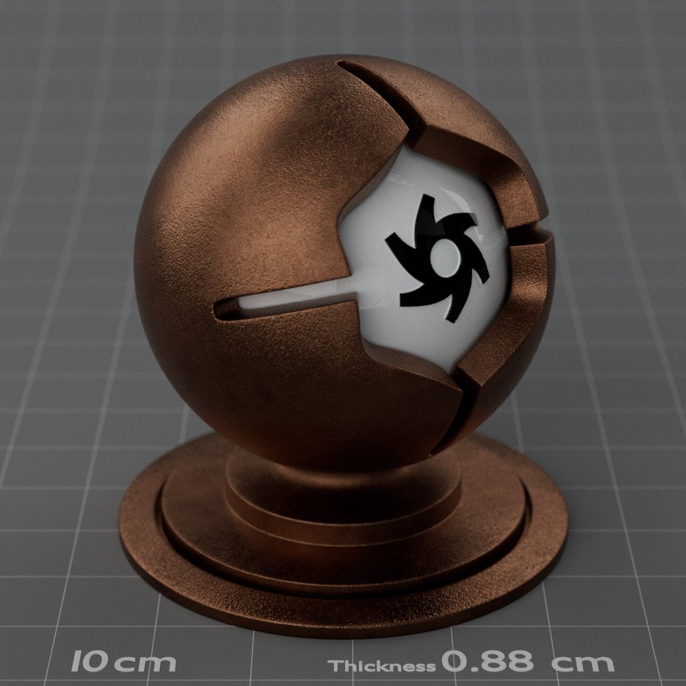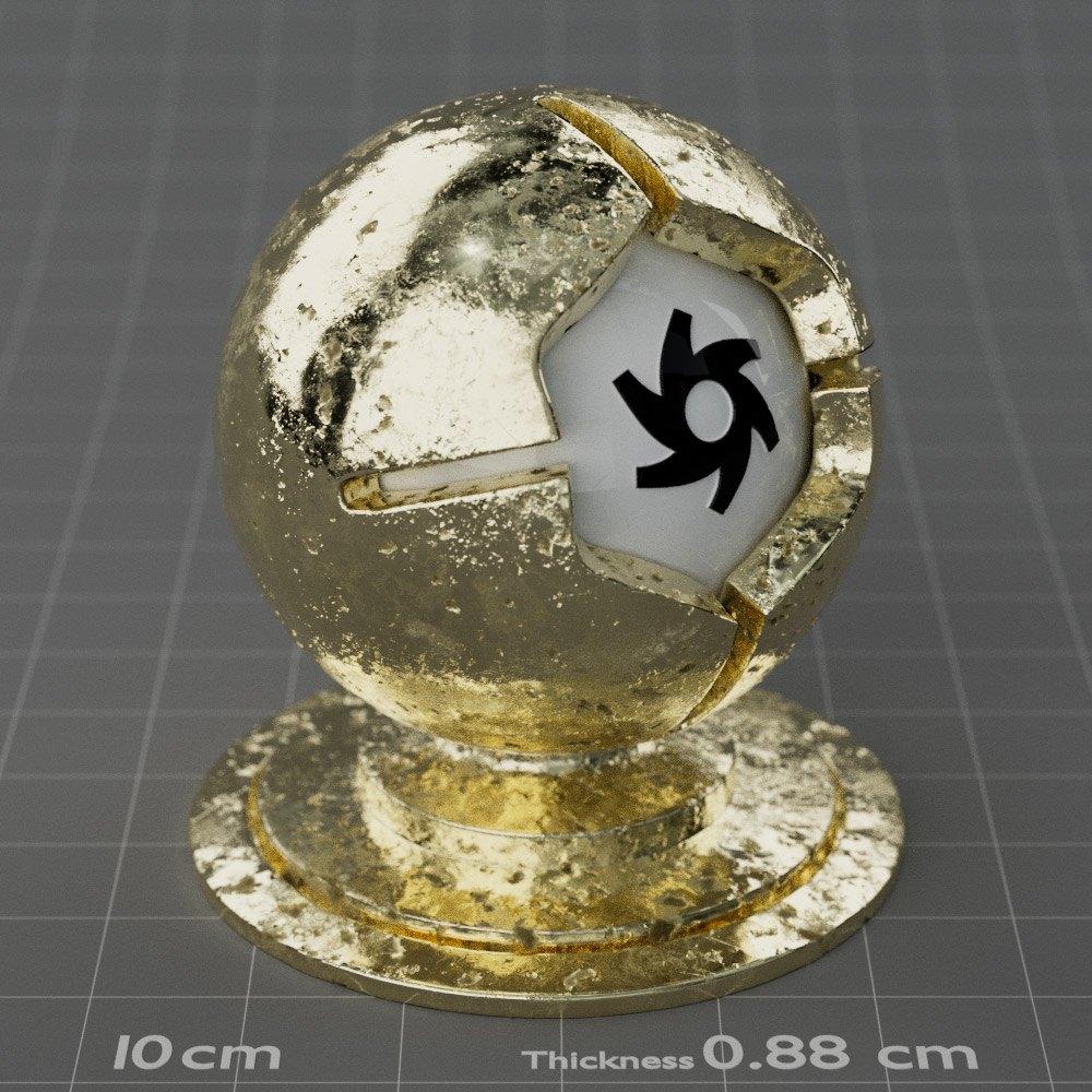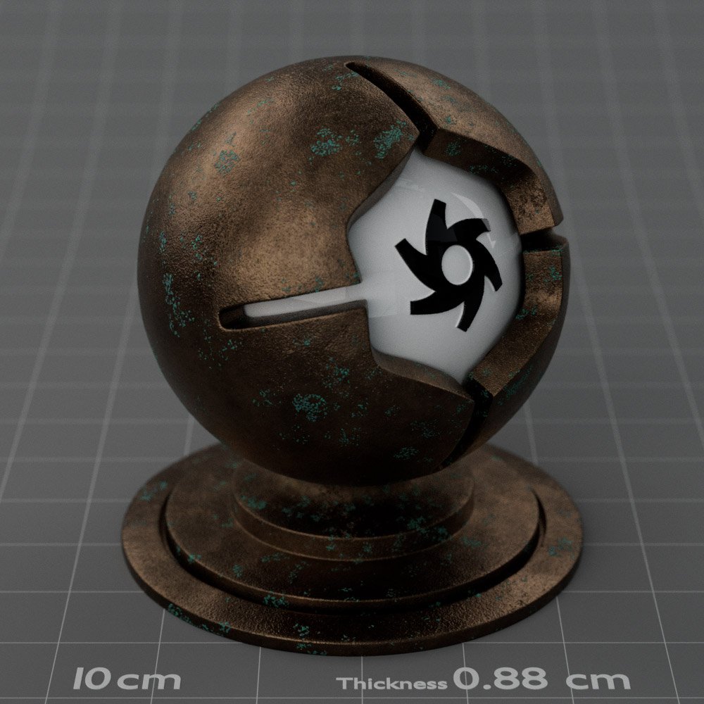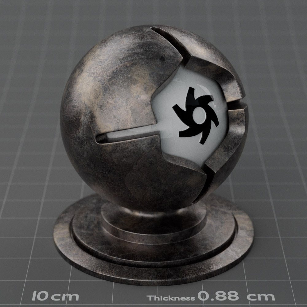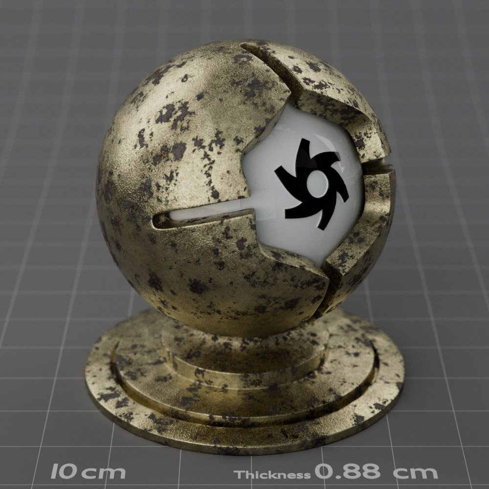 Included are 10 base metals: Aluminum, Brass, Bronze, Chrome, Copper, Gold, Iron, Platinum, Silver, and Steel. Every one has dozens of mutations like Polished, Smudged, Sandblasted, Cast, Grinded, Raw, Brushed, Powder Coated, Galvanized, Hammered, Wrought, Forged, Corroded/Rusted, Painted, Scratched, Pitted, Dented, and Damaged. This pack will help you iterate and find the perfect metal quickly, without having to dive into the node tree.