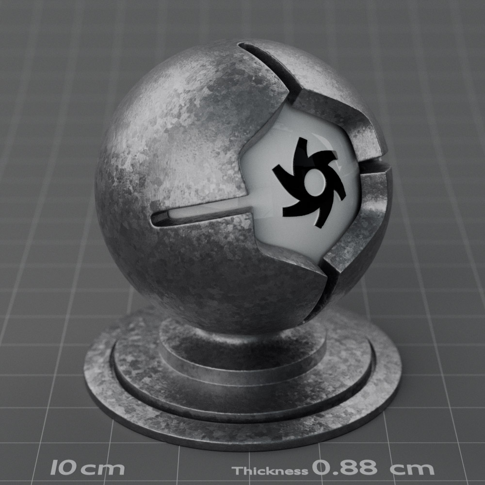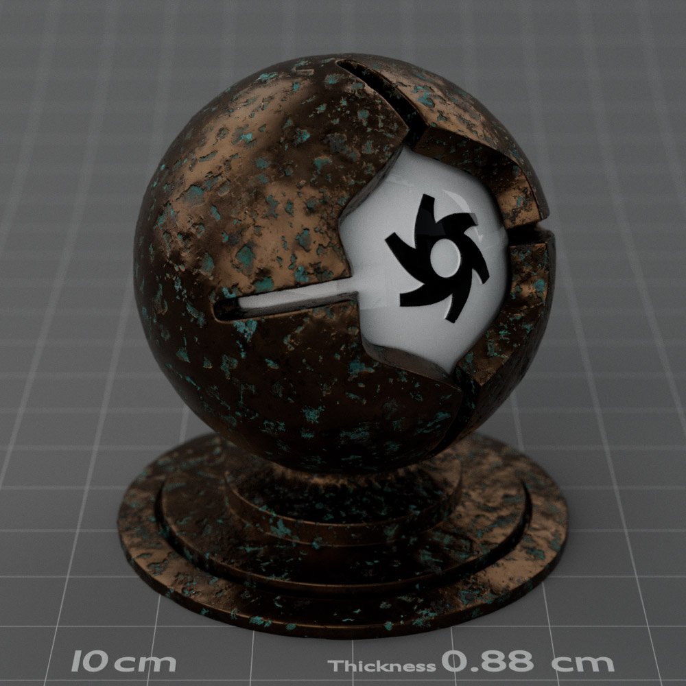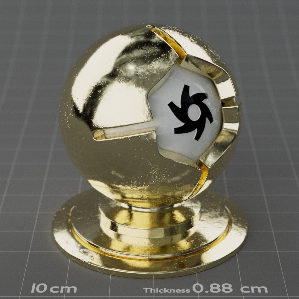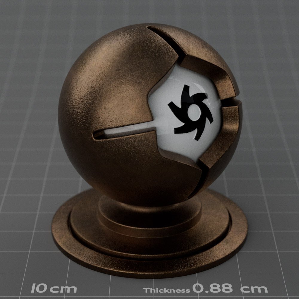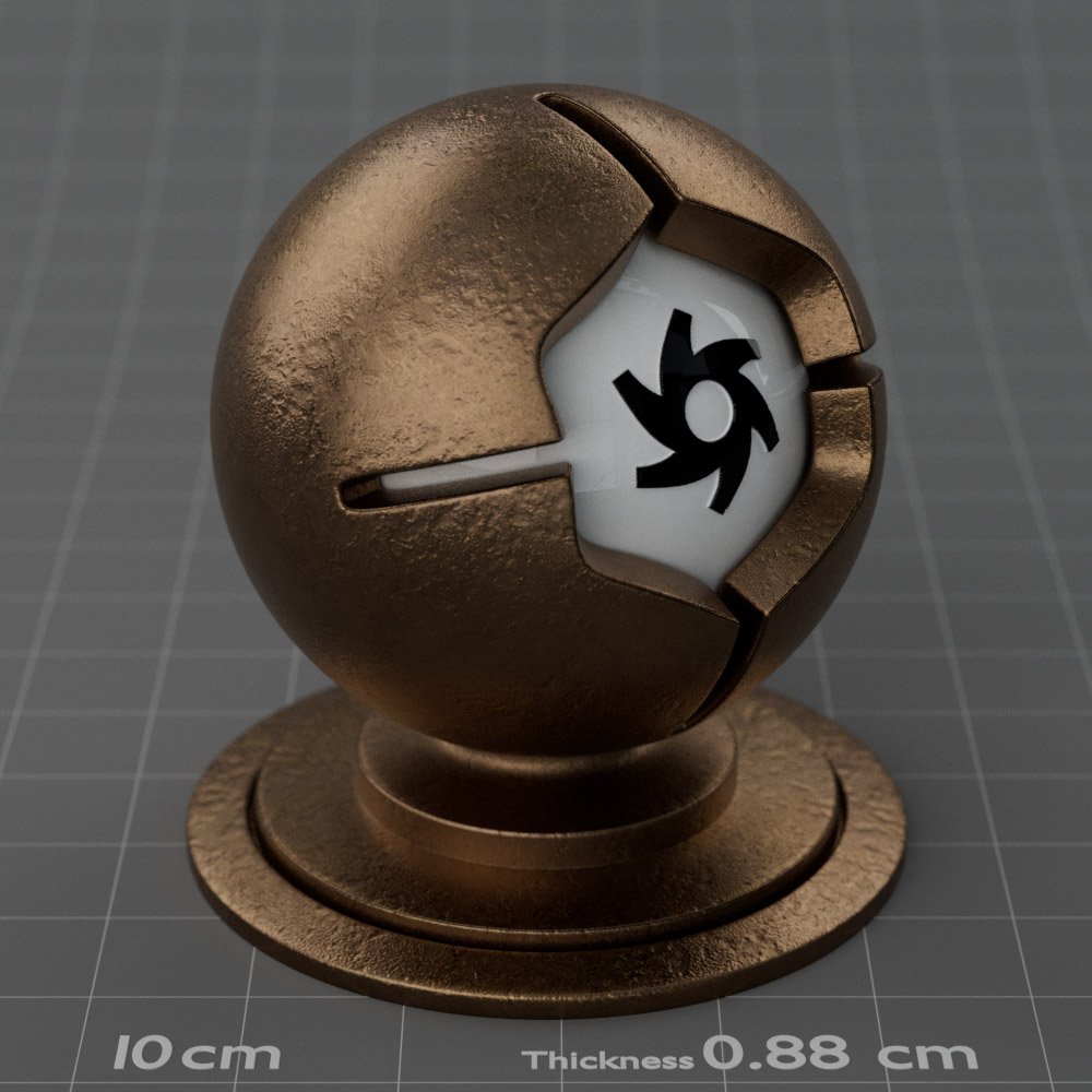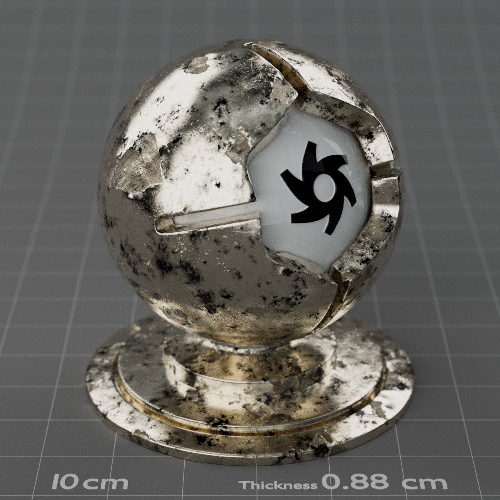 Included are 10 base metals: Aluminum, Brass, Bronze, Chrome, Copper, Gold, Iron, Platinum, Silver, and Steel. Every one has dozens of mutations like Polished, Smudged, Sandblasted, Cast, Grinded, Raw, Brushed, Powder Coated, Galvanized, Hammered, Wrought, Forged, Corroded/Rusted, Painted, Scratched, Pitted, Dented, and Damaged. This pack will help you iterate and find the perfect metal quickly, without having to dive into the node tree.