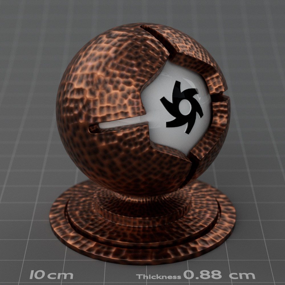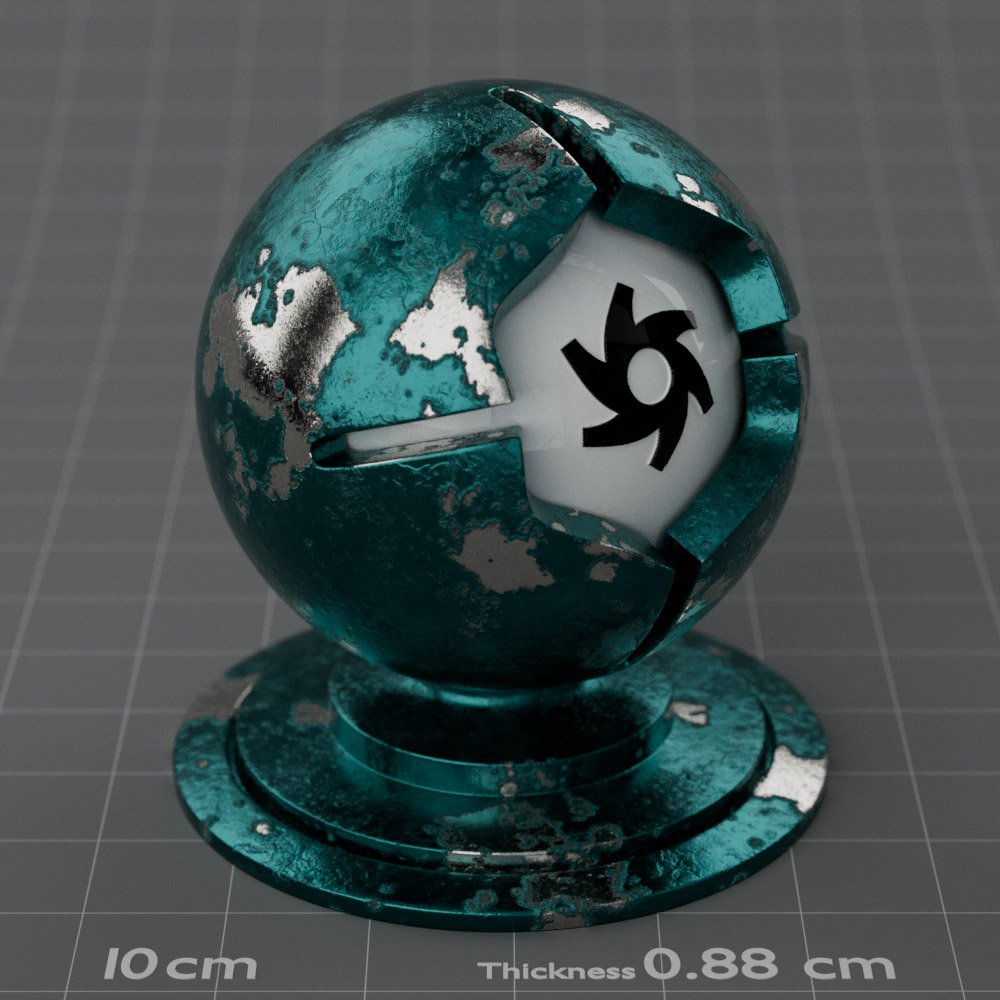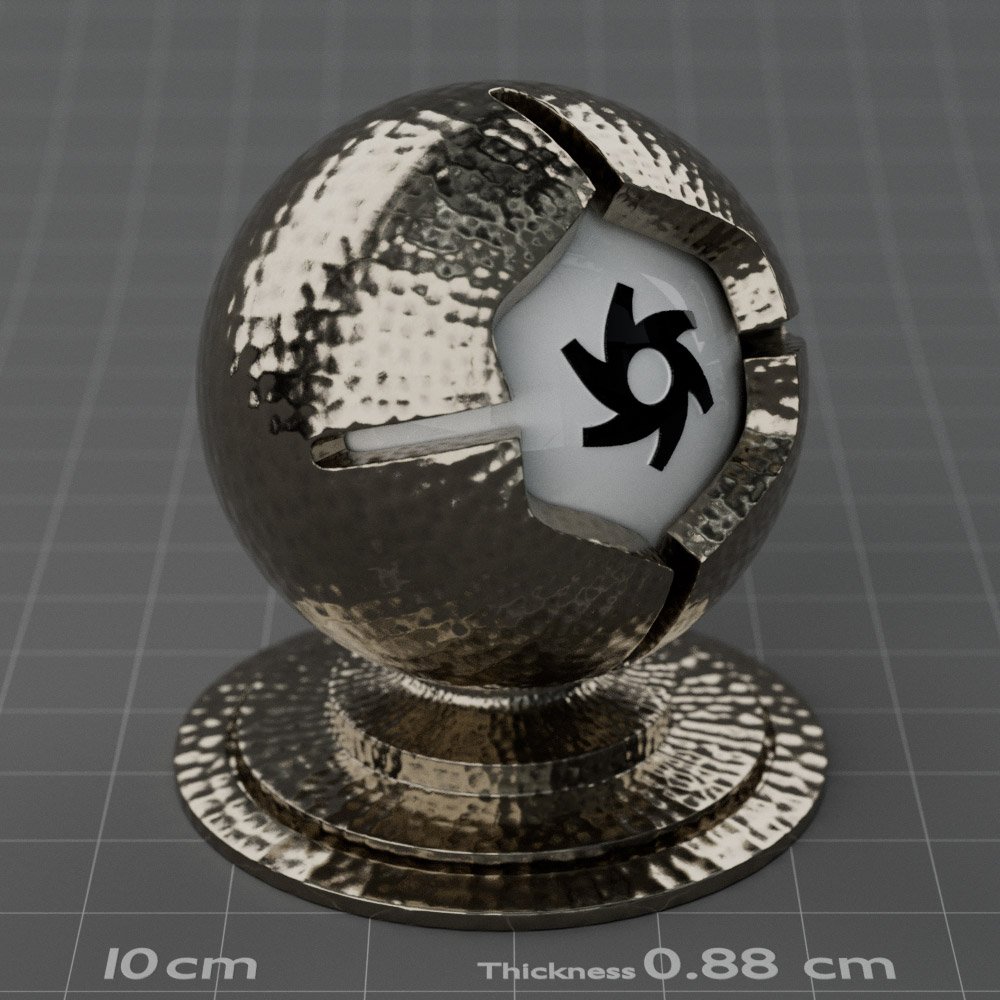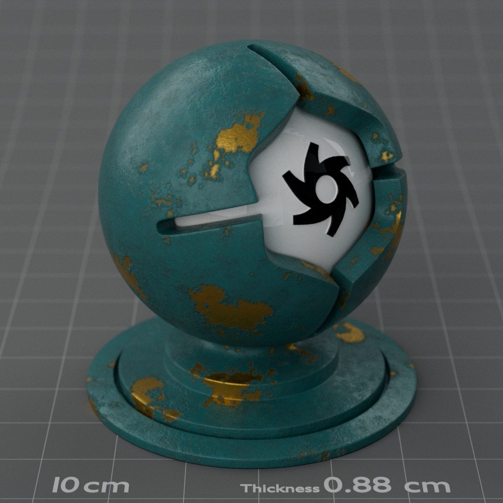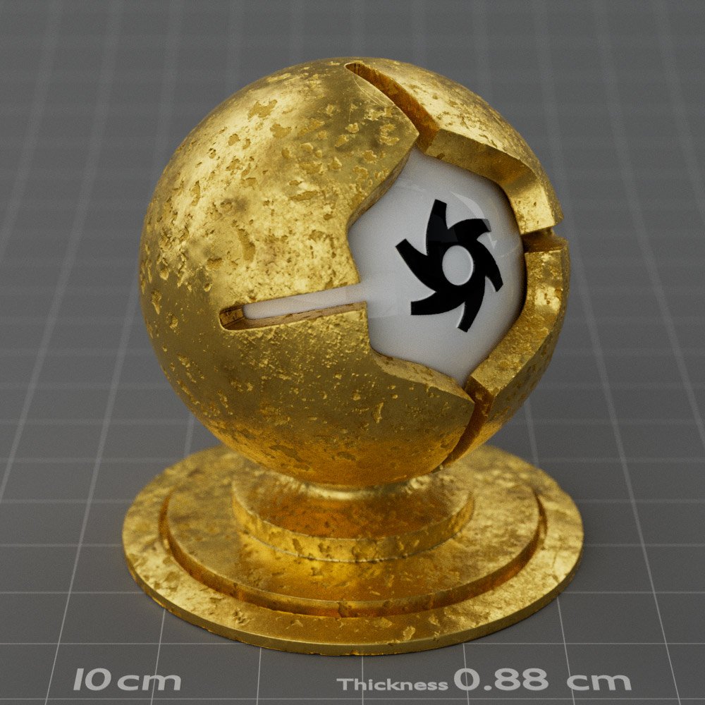 Included are 10 base metals: Aluminum, Brass, Bronze, Chrome, Copper, Gold, Iron, Platinum, Silver, and Steel. Every one has dozens of mutations like Polished, Smudged, Sandblasted, Cast, Grinded, Raw, Brushed, Powder Coated, Galvanized, Hammered, Wrought, Forged, Corroded/Rusted, Painted, Scratched, Pitted, Dented, and Damaged. This pack will help you iterate and find the perfect metal quickly, without having to dive into the node tree.