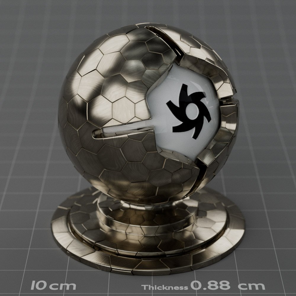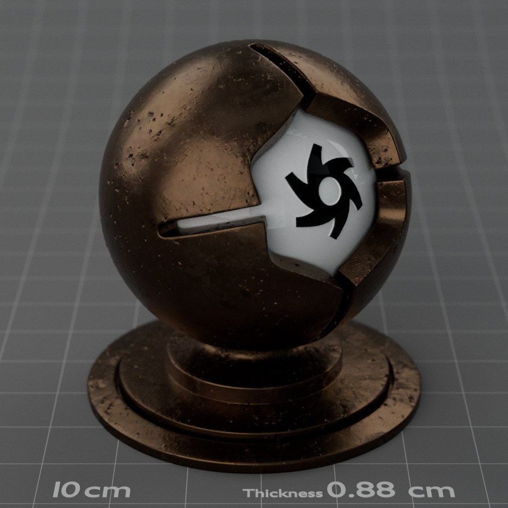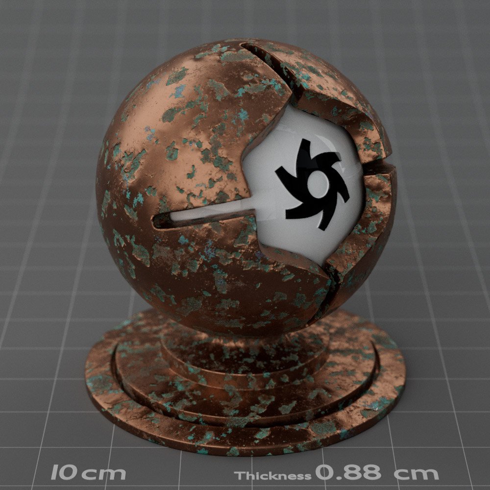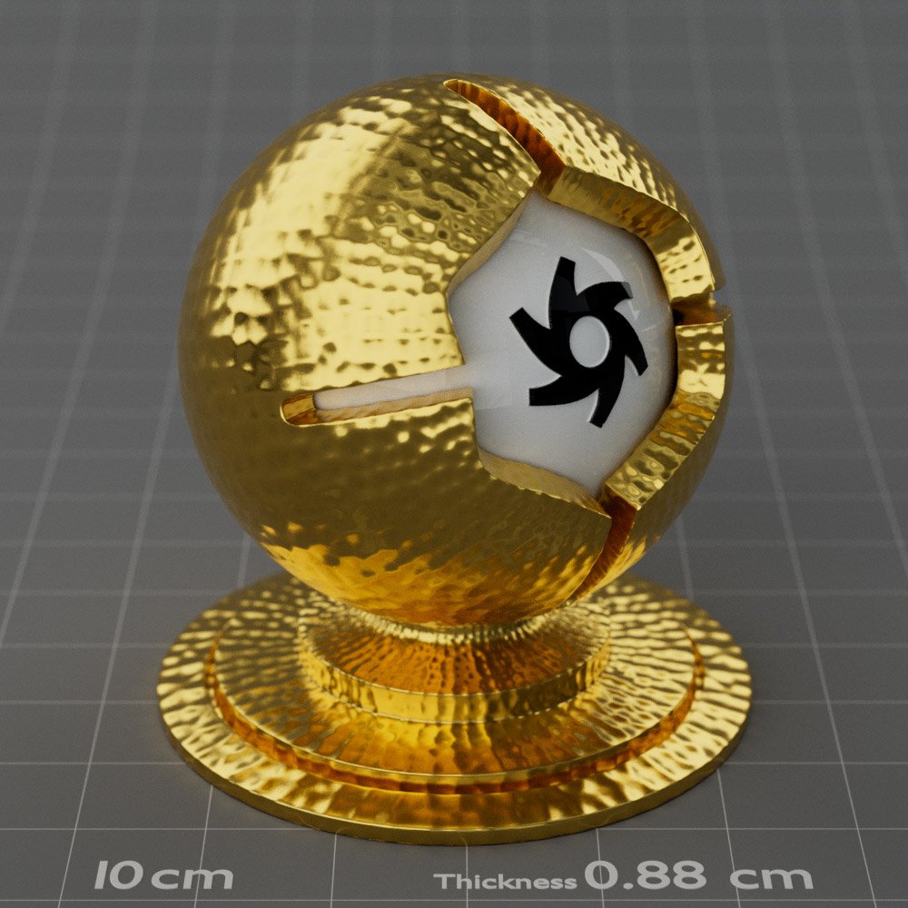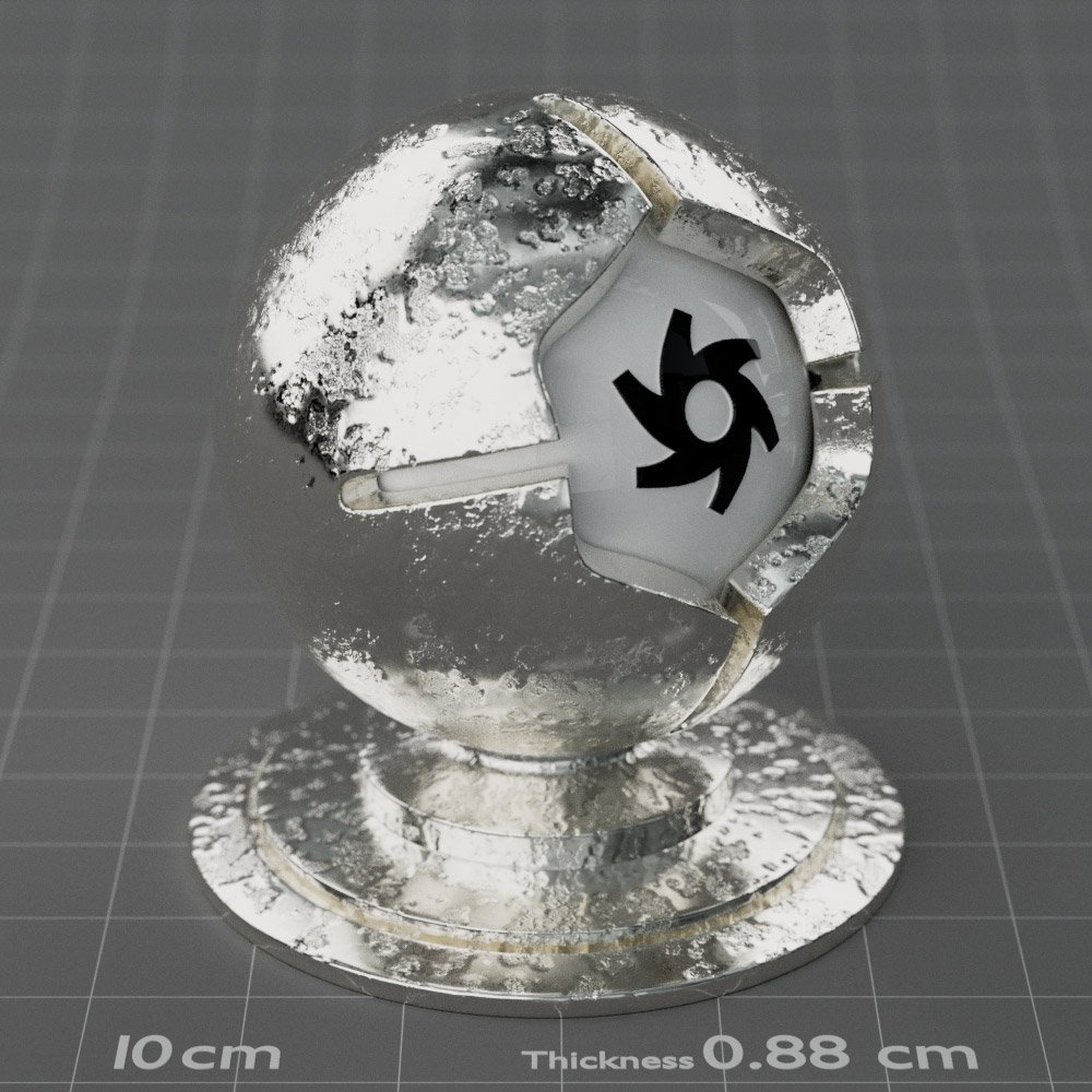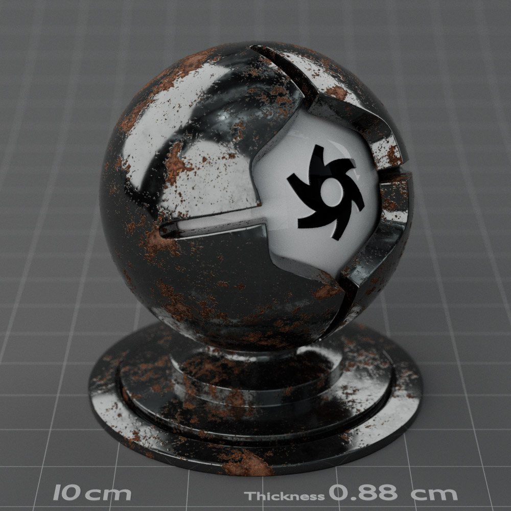 Included are 10 base metals: Aluminum, Brass, Bronze, Chrome, Copper, Gold, Iron, Platinum, Silver, and Steel. Every one has dozens of mutations like Polished, Smudged, Sandblasted, Cast, Grinded, Raw, Brushed, Powder Coated, Galvanized, Hammered, Wrought, Forged, Corroded/Rusted, Painted, Scratched, Pitted, Dented, and Damaged. This pack will help you iterate and find the perfect metal quickly, without having to dive into the node tree.